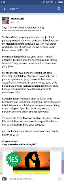 "Allahu Puan, saya hampir tidak percaya, 80% peratus masalah yang saya hadapi apabila berdepan dengan situasi @ drama kurang enak dari anak2 berjaya diselesaikan "